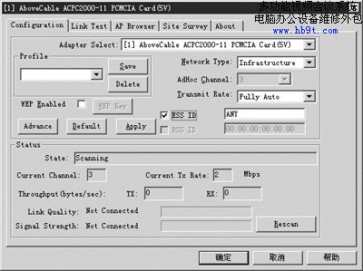 圖14 應(yīng)用程序還能對無線網(wǎng)絡(luò)的工作參數(shù)進(jìn)行設(shè)定,其中最關(guān)鍵的便是Network Type和Transmit Rate,默認(rèn)值都是自動調(diào)整。當(dāng)然,如果你對無線網(wǎng)絡(luò)工作模式十分了解的話,也可以自己設(shè)定。