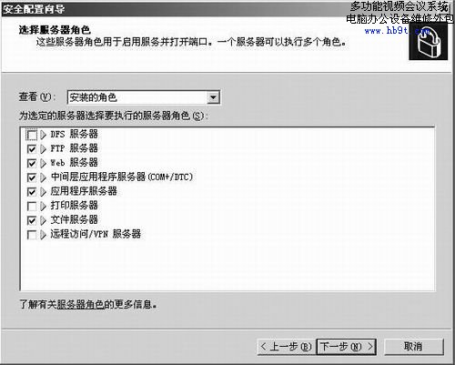 Windows 2003服務(wù)器提供了數(shù)量眾多的服務(wù)器角色,如文件服務(wù)器、DHCP服務(wù)器等,但并不是所有的角色都是需要的。使用不慎,反而會(huì)增加服務(wù)器的安全隱患。利用SCW的“選擇服務(wù)器角色”向?qū)Ь湍茌p松完成角色的選擇。