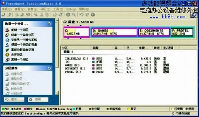 重新啟動電腦進(jìn)入Windows XP,運(yùn)行PQ8.0,可以看到當(dāng)前硬盤中的分區(qū)情況,如下圖: