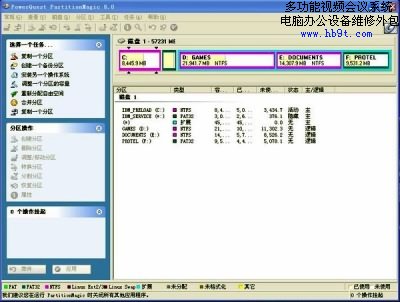 為保險起見,請再次運(yùn)行PQ8.0,將IBM_SERVICE分區(qū)隱藏起來。以后需要更新Winxp.gho文件的時候可以再取消隱藏屬性就行了。